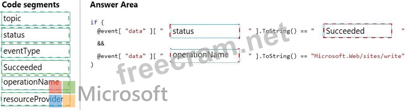 How should you complete the code? To answer, drag the appropriate code segments to the correct locations.