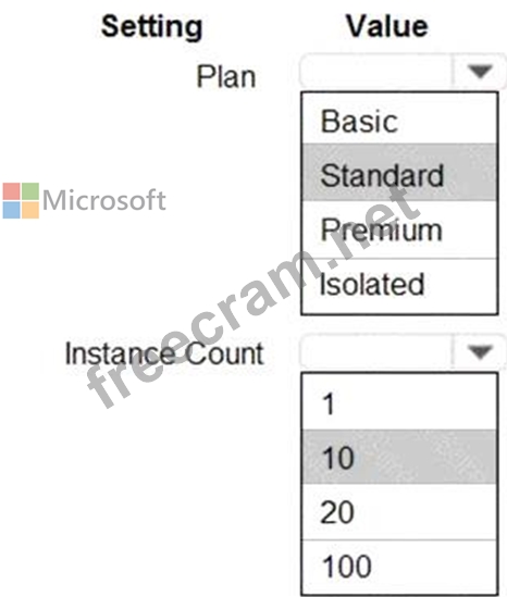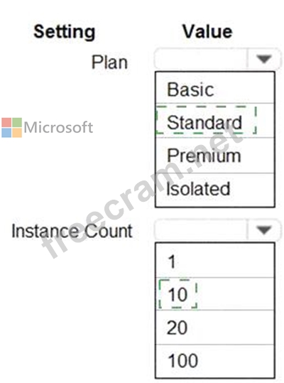Which values should you use? To answer, select the appropriate options in the answer area.