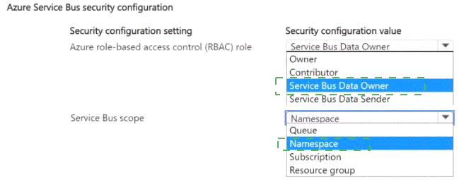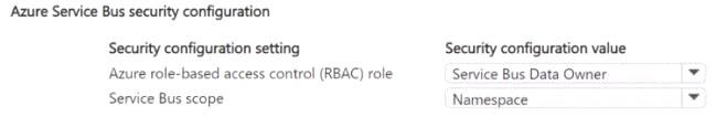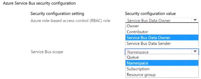 Which Service Bus security configuration should you use? To answer, select the appropriate options in the answer area.