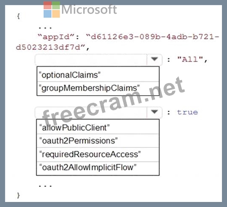 How should you configure the manifest? To answer, select the appropriate options in the answer area.