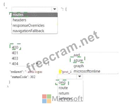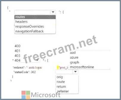 Question 168: You develop and deploy the following staticwebapp.config.jso...