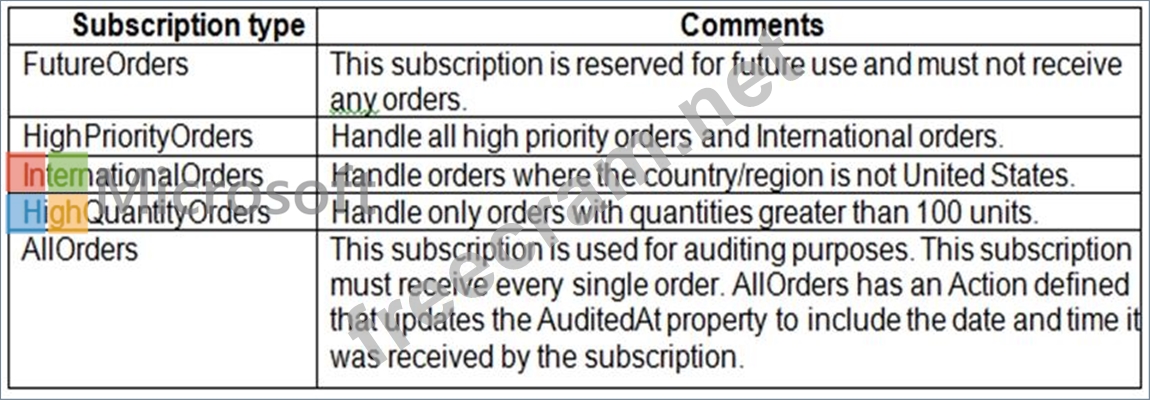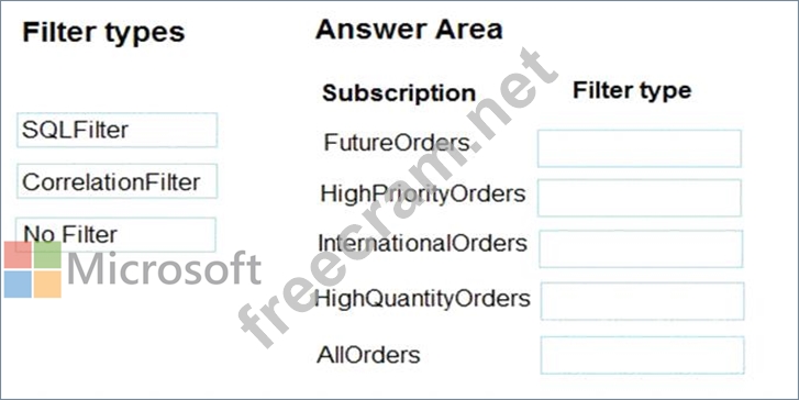 Correlation Filters - A CorrelationFilter holds a set of conditions that are matched against one or more of an arriving message's user and system properties. A common use is to match against the CorrelationId property, but the application can also choose to match against ContentType, Label, MessageId, ReplyTo, ReplyToSessionId, SessionId, To, and any user-defined properties. A match exists when an arriving message's value for a property is equal to the value specified in the correlation filter. For string expressions, the comparison is case-sensitive. When specifying multiple match properties, the filter combines them as a logical AND condition, meaning for the filter to match, all conditions must match.