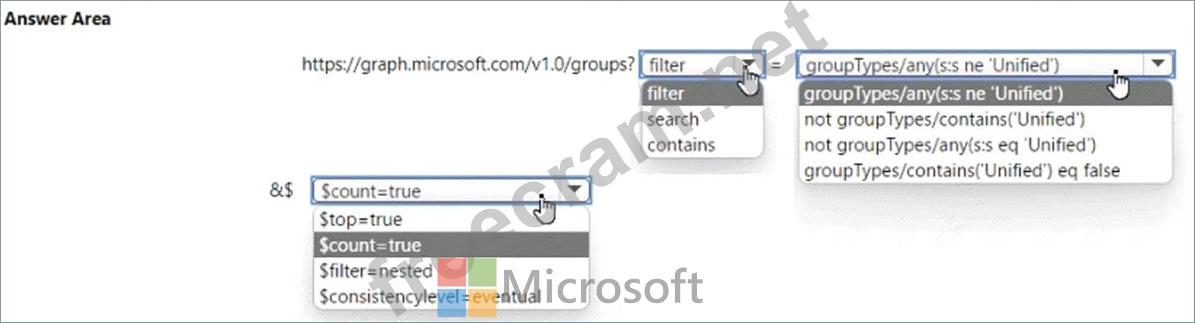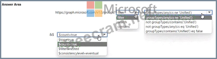 You build a web page that shows all Azure AD groups that are not of the type 'Unified'.
