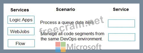 Which service should you use for each scenario? To answer, drag the appropriate services to the correct scenarios. Each service may be used once, more than once, or not at all. You may need to drag the split bar between panes or scroll to view content.