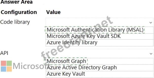 Which configurations should you use? To answer, select the appropriate options in the answer area.