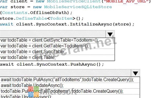 How should you complete the code segment? To answer, select the appropriate options in the answer area.