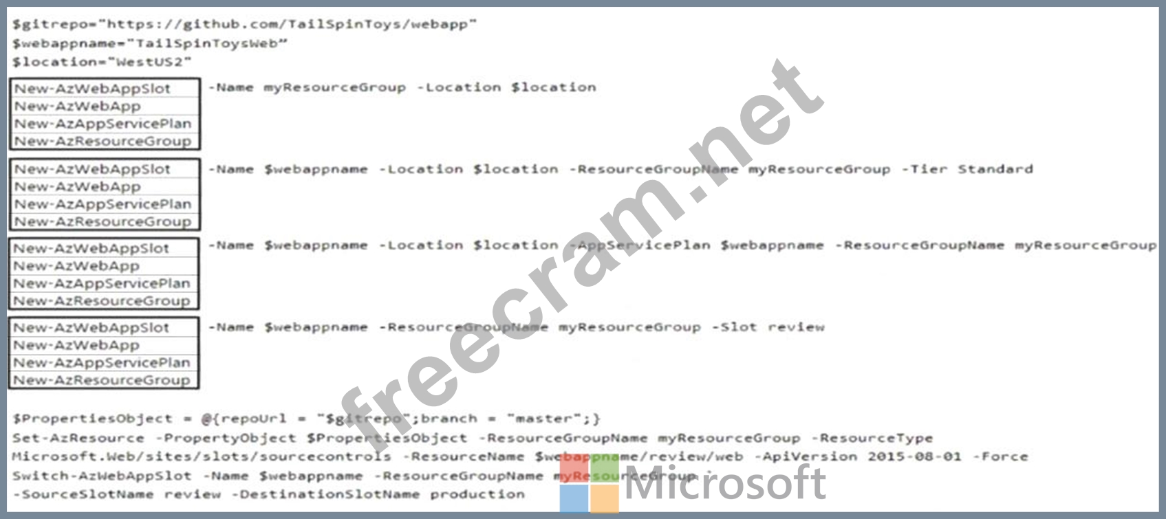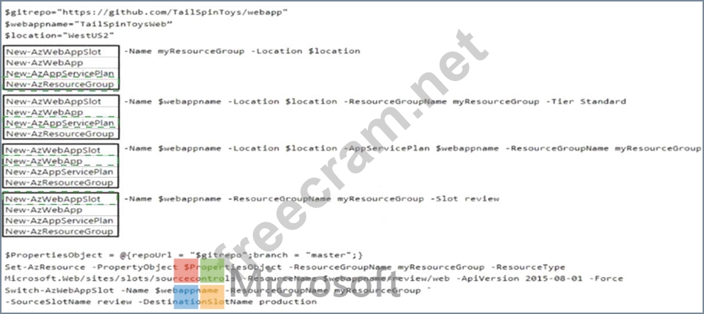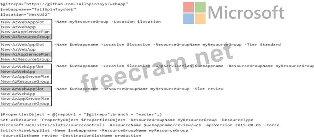 Question 74: You are creating a CLI script that creates an Azure web app ...