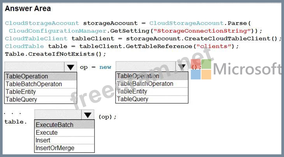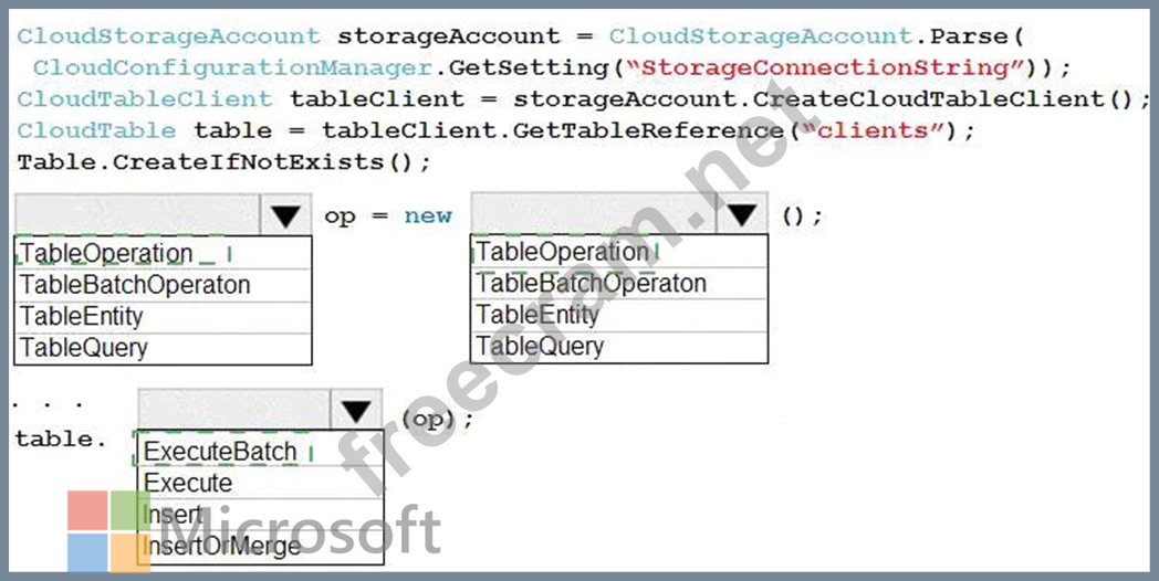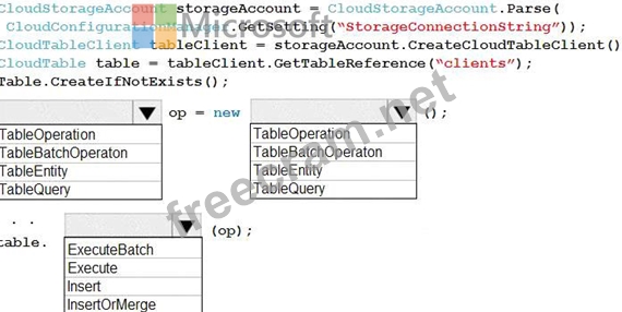 How should you complete the code? To answer, select the appropriate options in the answer area.