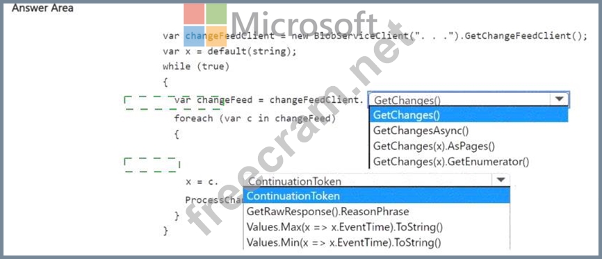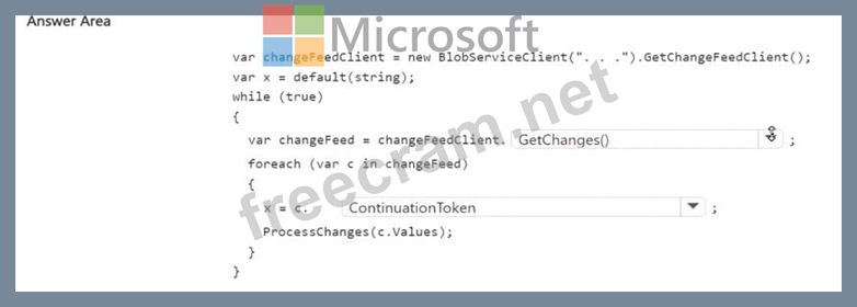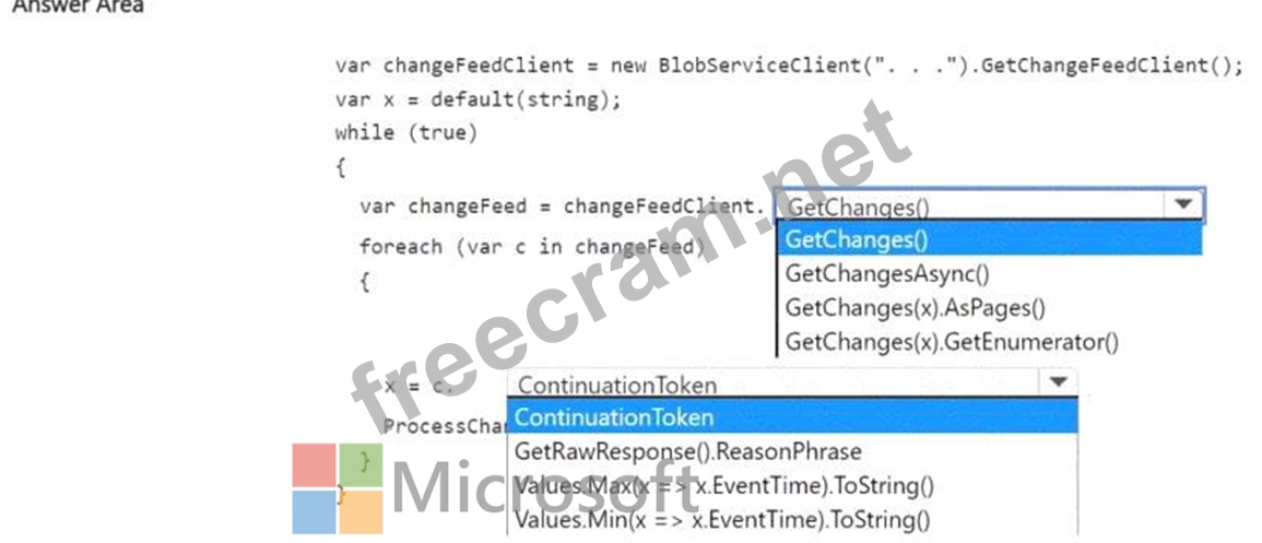 How should you complete the code segment? TO answer, select the appropriate options in the answer area.