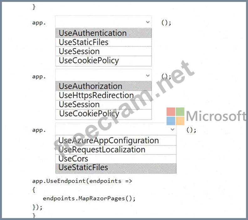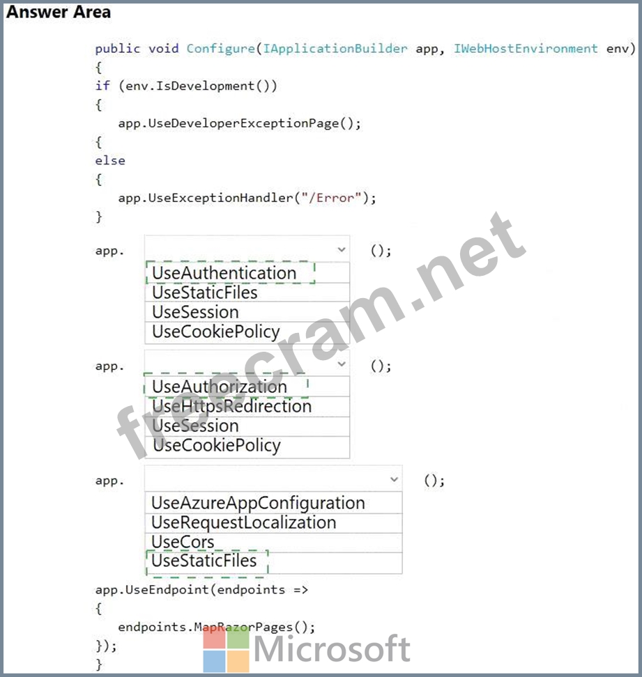 Question 43: You are developing an ASP.NET Core website that uses Azure F...