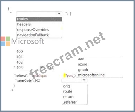 How should you complete the configuration file? To answer, select the appropriate options In the answer area.