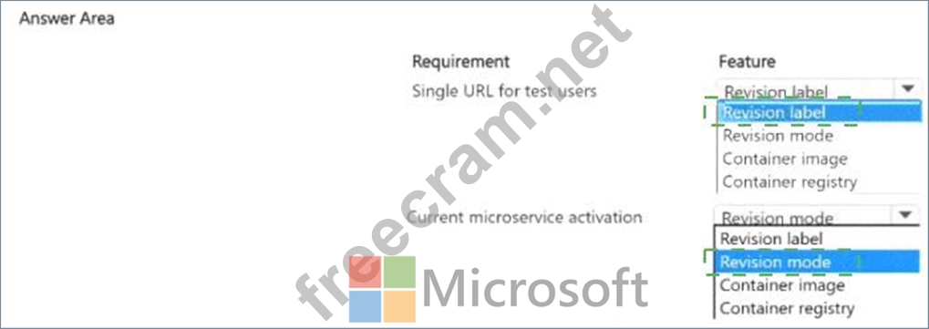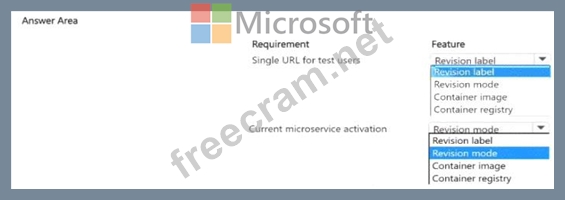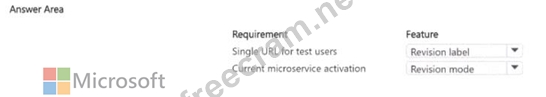 You are developing several microservices to run on Azure Container Apps. External HTTP ingress traffic has been enabled for the microservices. A deployed microservice must be updated to allow users to test new features. You have the following requirements: