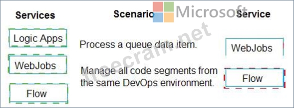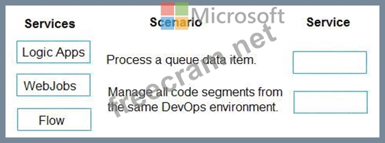 Which service should you use for each scenario? To answer, drag the appropriate services to the correct scenarios. Each service may be used once, more than once, or not at all. You may need to drag the split bar between panes or scroll to view content.