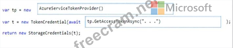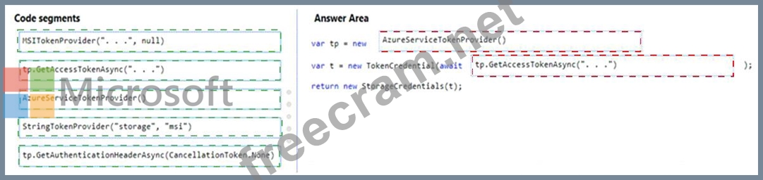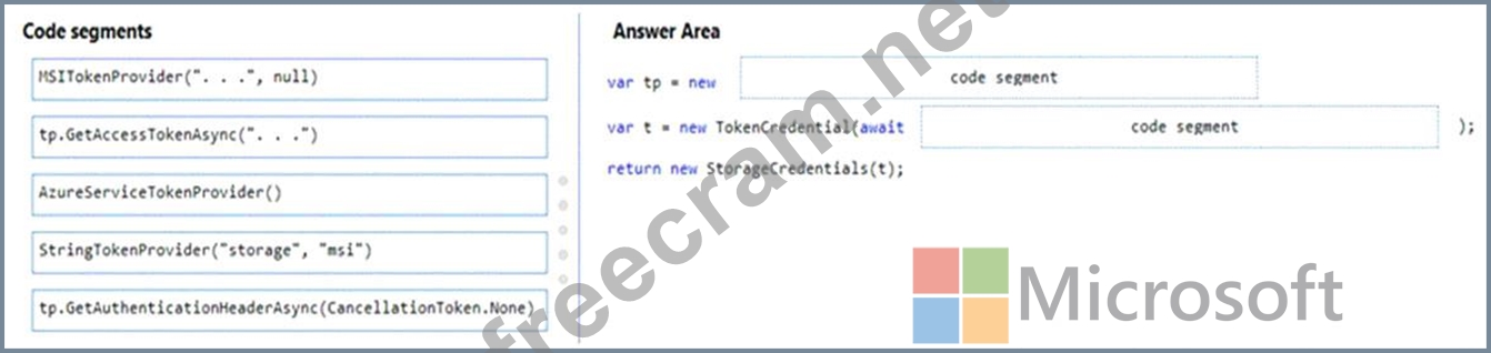How should you complete the code? To answer, drag the appropriate code segments to the correct locations.
