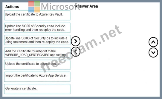Scenario: All SSL certificates and credentials must be stored in Azure Key Vault.
