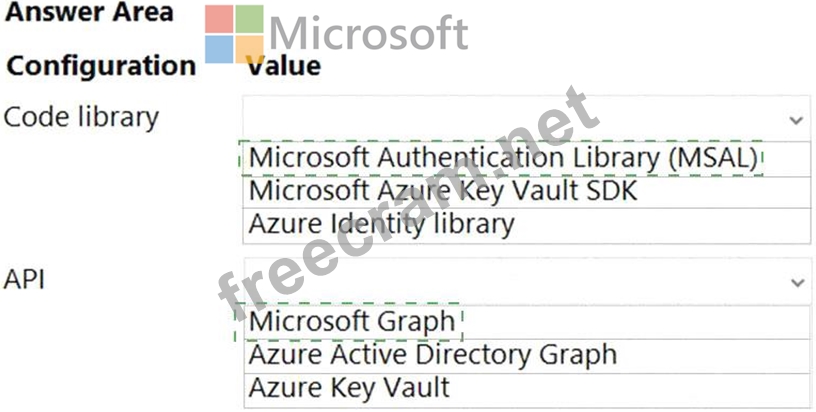 Which configurations should you use? To answer, select the appropriate options in the answer area.