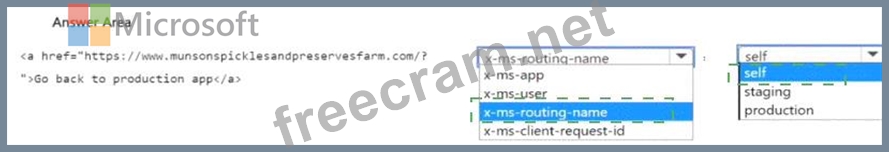 How should you complete the code segment? To answer, select the appropriate options in the answer area NOTE: Each correct selection is worth one point.