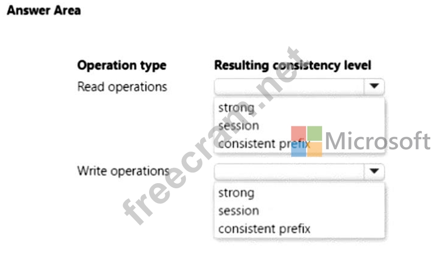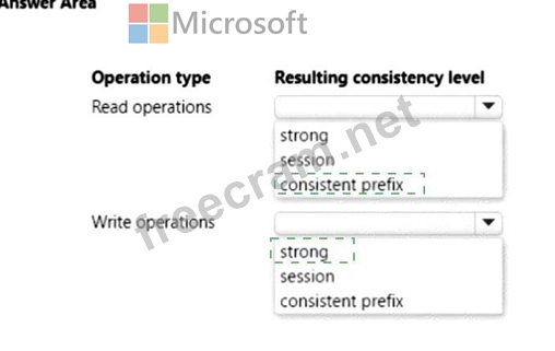 You plan to configure the consistency level on a per request basis The level needs to be set for consistent prefix for read and write operations to account1.
