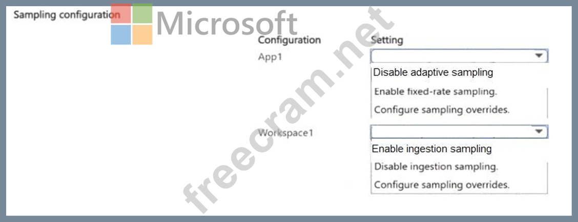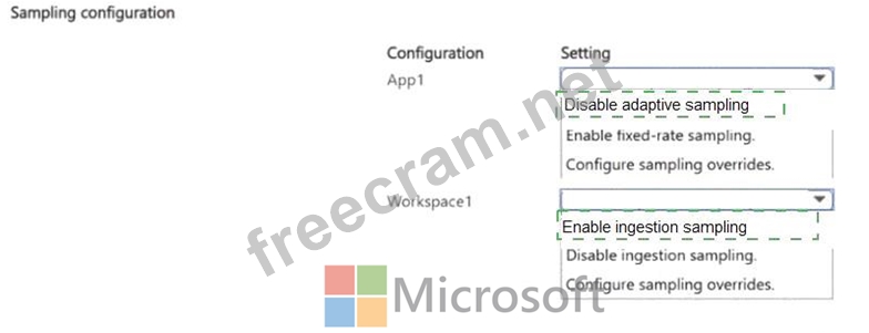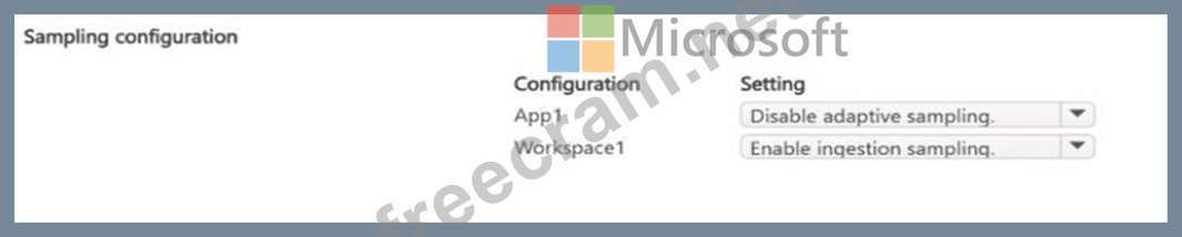 You have an Azure Function app named App1 written in C# and an Application Insights workspace named Workspaces App1 is implemented with Application Insights enabled and is configured to send its telemetry to Workspaces You observe that App1 telemetry collection regularly exceeds monthly quotas of Workspacel.