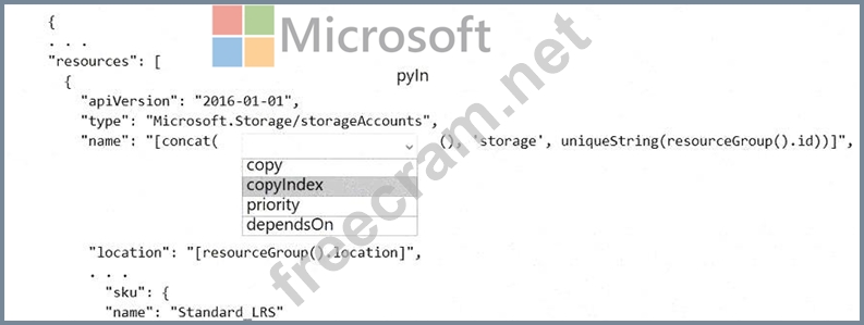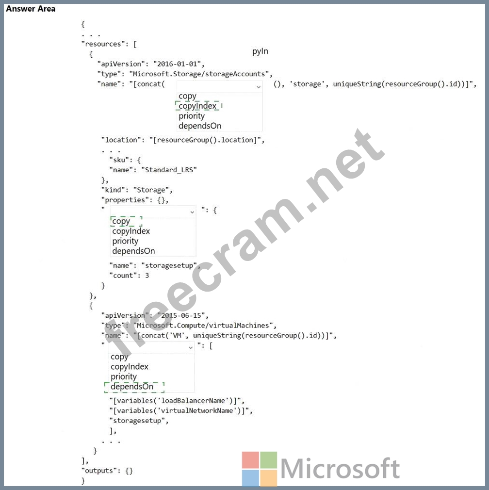 Notice that the name of each resource includes the copyIndex() function, which returns the current iteration in the loop. copyIndex() is zero-based.