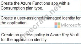 You are developing a serverless Java application on Azure. You create a new Azure Key Vault to work with secrets from a new Azure Functions application.