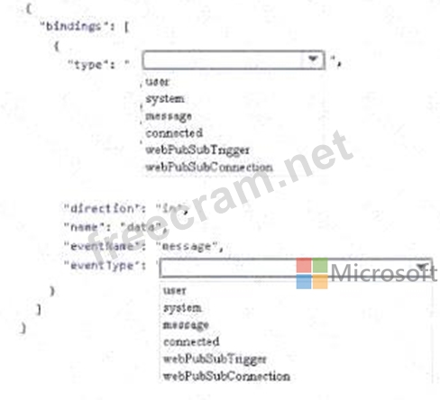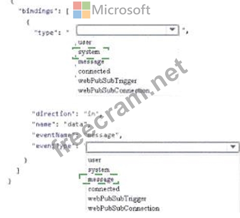 You are developing a service where customers can report news events from a browser using Azure Web PubSub. The service is implemented as an Azure App that the JSON WebSocket suprotocol to receive news events.