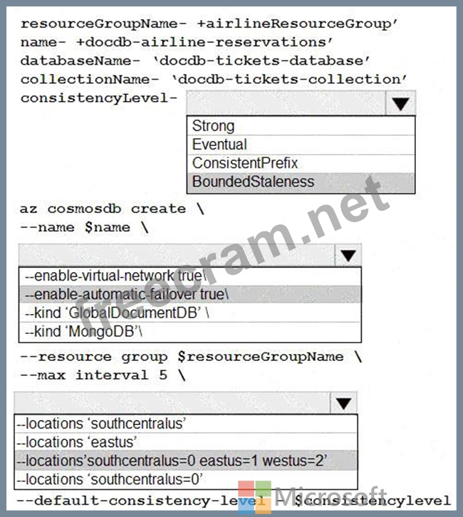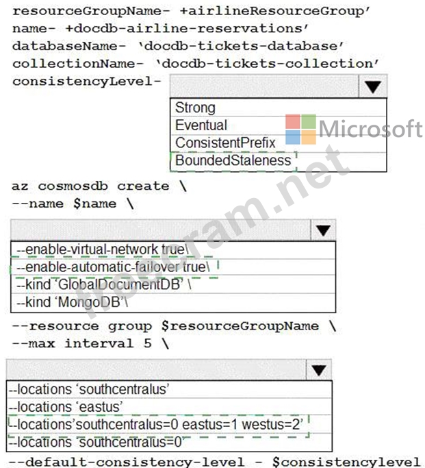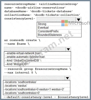 How should you complete the Azure CLI commands? To answer, select the appropriate options in the answer area.
