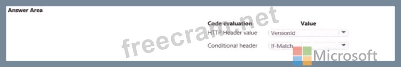 You are developing a web application by using the Azure SDK. The web application accesses data m a zone- redundant BlockBlobStorage storage account The application must determine whether the data has changed since the application last reao the data. Update operations must use the latest data changes when writing data to the storages..................