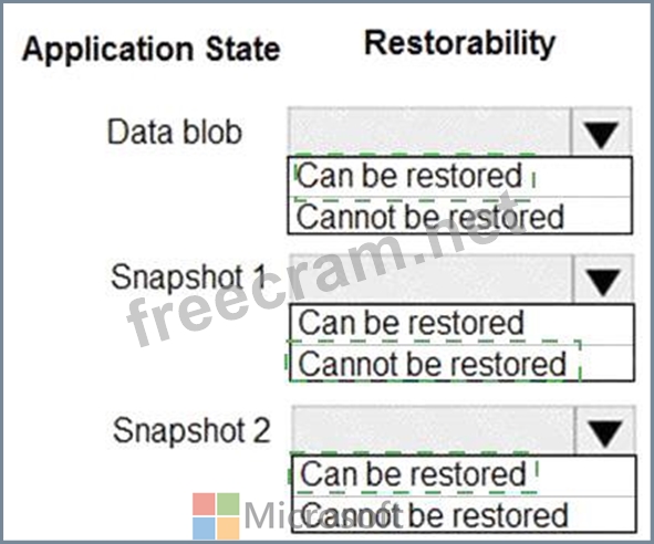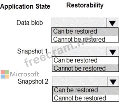 You are developing an application that use an Azure blob named data to store application data. The application creates blob snapshots to allow application state to be reverted to an earlier state. The Azure storage account has soft deleted enabled.