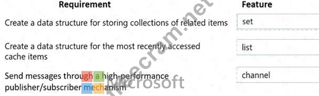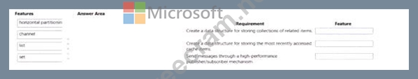 Which feature should you implement? To answer, drag the appropriate feature to the correct requirements Each feature may be used once, more than once, or not at all You may need to ------------ between panes or scroll to view content.