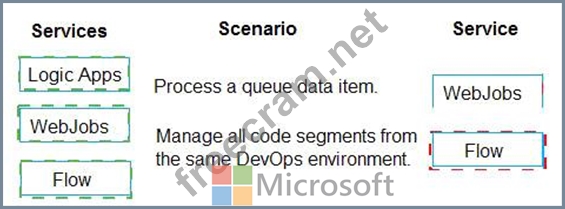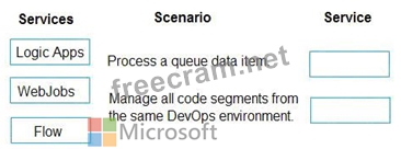 Which service should you use for each scenario? To answer, drag the appropriate services to the correct scenarios. Each service may be used once, more than once, or not at all. You may need to drag the split bar between panes or scroll to view content.