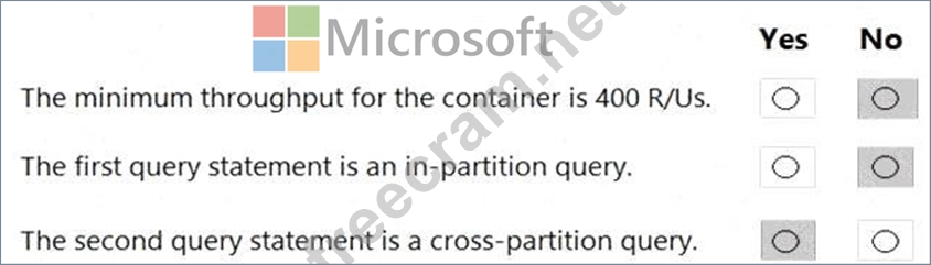 For each of the following statements, select Yes if the statement is true. Otherwise, select No.