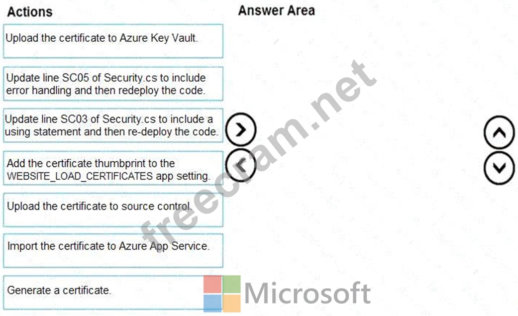 Question 28: You are developing an Azure Web App. You configure TLS mutua...