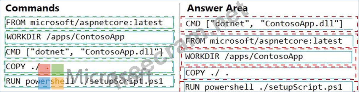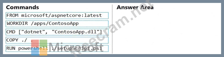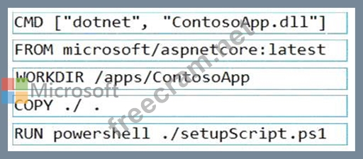 You plan to create a Docker image that runs an ASP.NET Core application named ContosoApp. You have a setup script named setupScript.ps1 and a series of application files including ContosoApp.dll.