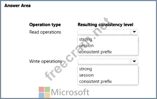 You plan to configure the consistency level on a per request basis The level needs to be set for consistent prefix for read and write operations to account1.