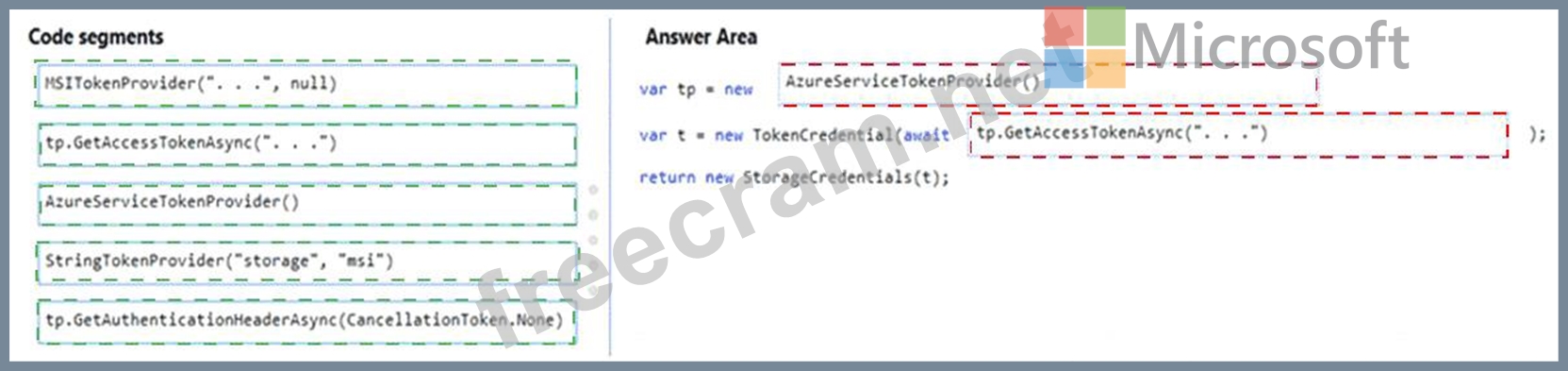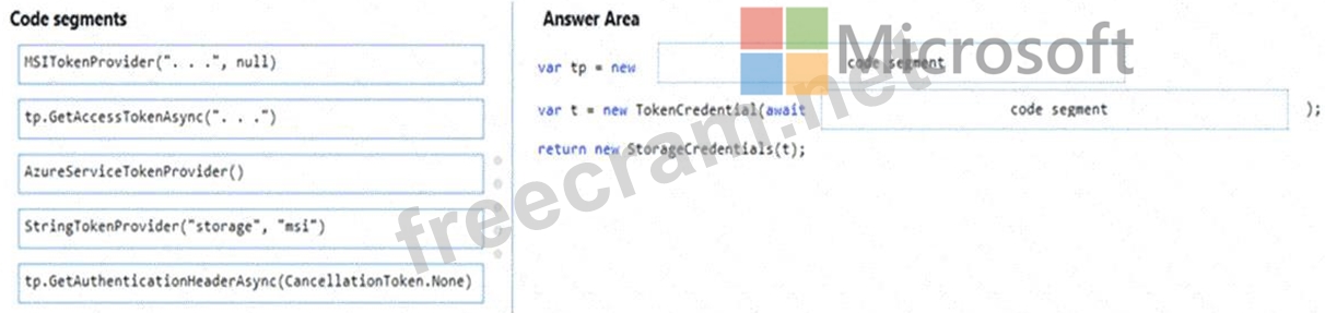 How should you complete the code? To answer, drag the appropriate code segments to the correct locations.