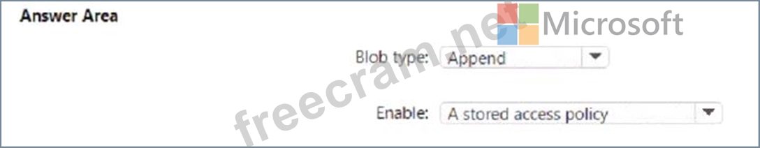 Which type of blob should you create, and what should you enable for the accounts? To answer, select the appropriate options in the answer area.