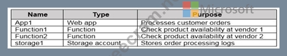 You are designing an order processing system in Azure that will contain the Azure resources shown in the following table.