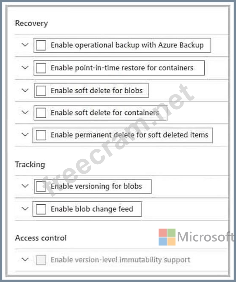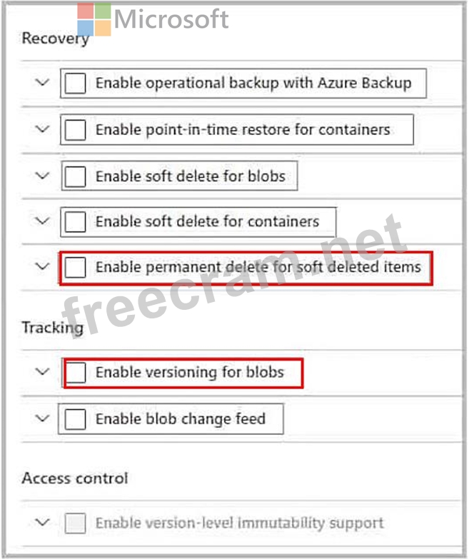 You need to configure the storage account to meet the following requirements: