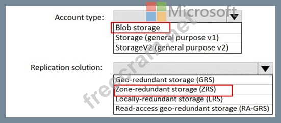 You need to recommend a storage account type to store the data files and a replication solution for the storage account. The solution must meet the following requirements: