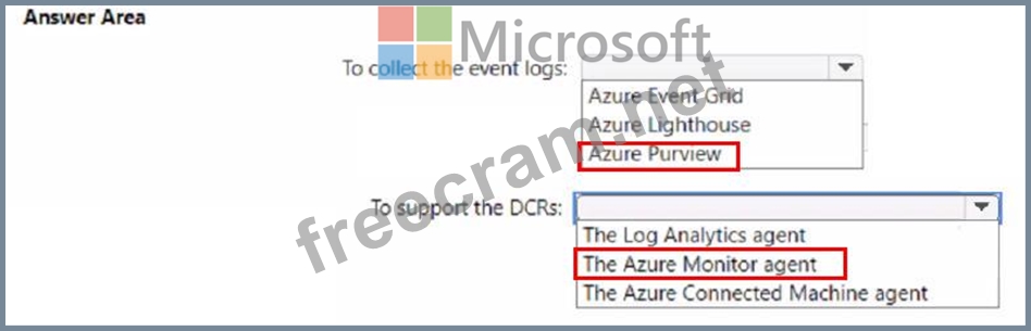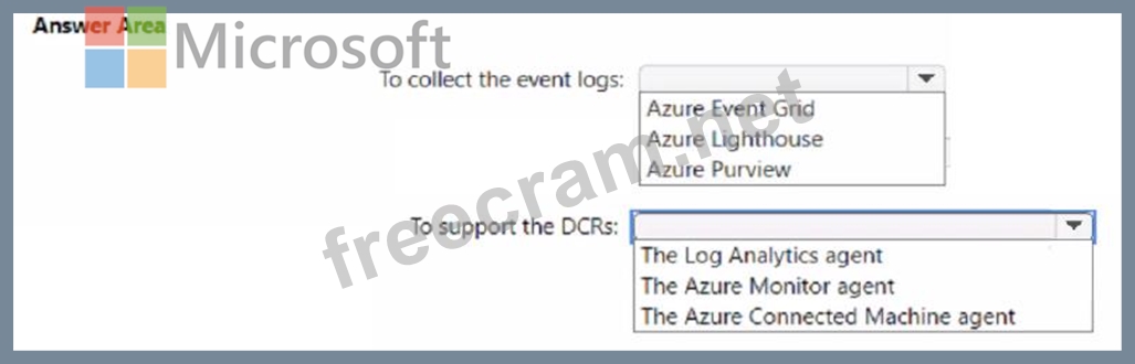 * Supports the use of data collection rules (DCRs) to define which events to collect What should you recommend for each requirement? To answer, select the appropriate options in the answer are a. NOTE: Each correct selection is worth one point.