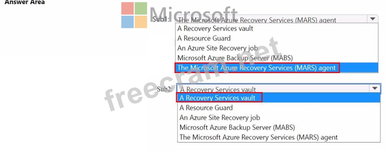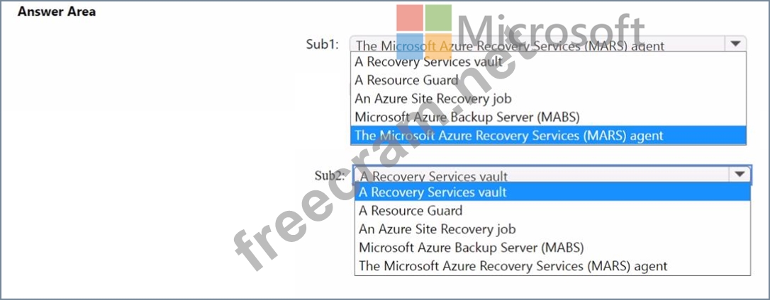 * Ensure that all the resources in Sub1 are backed up by using Azure Backup.