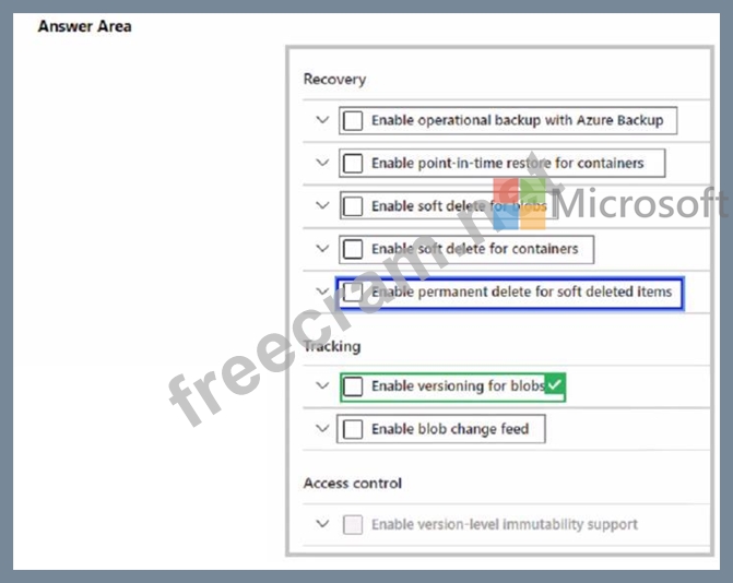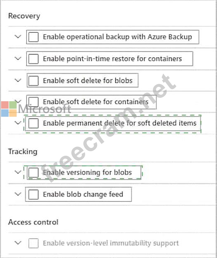 Question 87: You plan to store data in Azure Blob storage for many years....