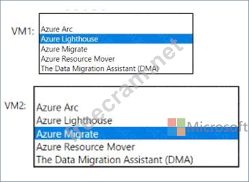 What should you use to move each virtual machine? To answer, select the appropriate options in the answer area.
