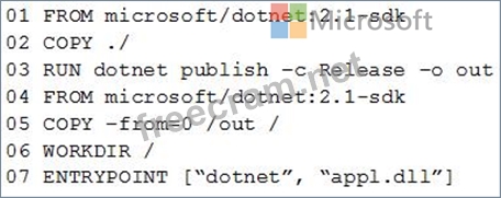 Question 26: You plan to create an image that will contain a .NET Core ap...