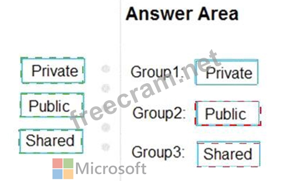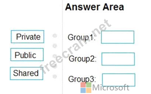 Which type of distribution group should you use for each group? To answer, drag the appropriate group types to the correct locations. Each group type may be used once, more than once, or not at all. You may need to drag the split bar between panes or scroll to view content.
