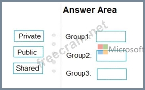 Which type of distribution group should you use for each group? To answer, drag the appropriate group types to the correct locations. Each group type may be used once, more than once, or not at all. You may need to drag the split bar between panes or scroll to view content.