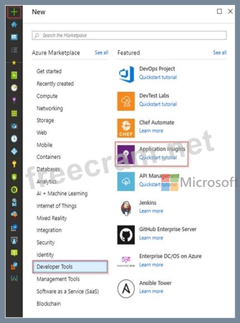 Question 9: You need to create an instance of Azure Application Insights...
