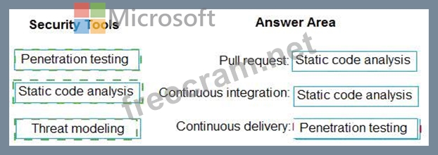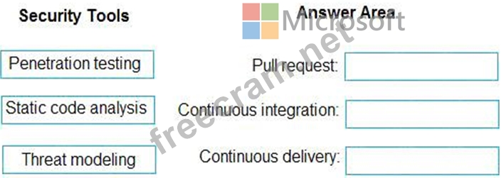 Which type of security tool should you recommend for each stage of the development process? To answer, drag the appropriate security toots to the correct stages. Each security tool may be used once, more than once, or not at all. You may need to drag the split bar between panes or scroll to view content NOTE: Each correct selection is worth one point.