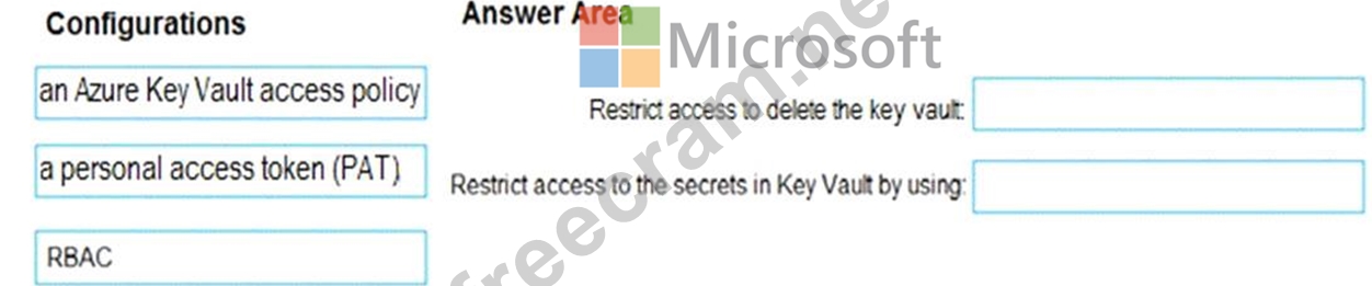 You need to recommend a solution for accessing the secrets stored in the key vault during deployments. The solution must use the principle of least privilege.